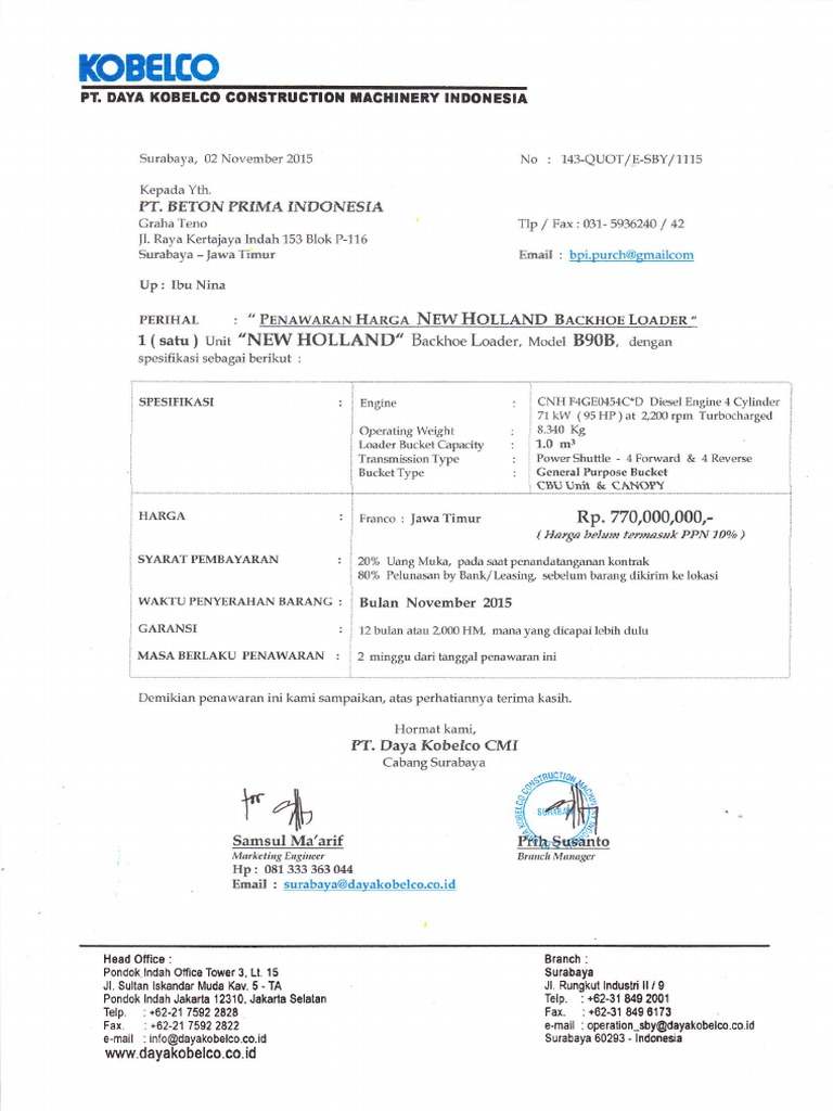 Sebab, negosiasi awal dilakukan melalui surat penawaran. Surat penawaran terdiri dari berbagai jenis tergantung dengan tujuan dibuatnya surat penawaran. Dalam surat penawaran barang juga seringkali dicantumkan harga barang yang ditawarkan beserta tata cara pembayaran yang disediakan oleh perusahaan yang menawarkan barang tersebut. Terima kasih atas perhatian yang telah diberikan. Contoh surat penawaran barang elektronik.